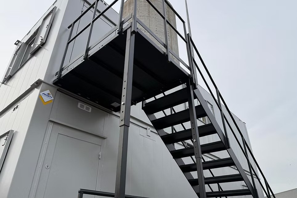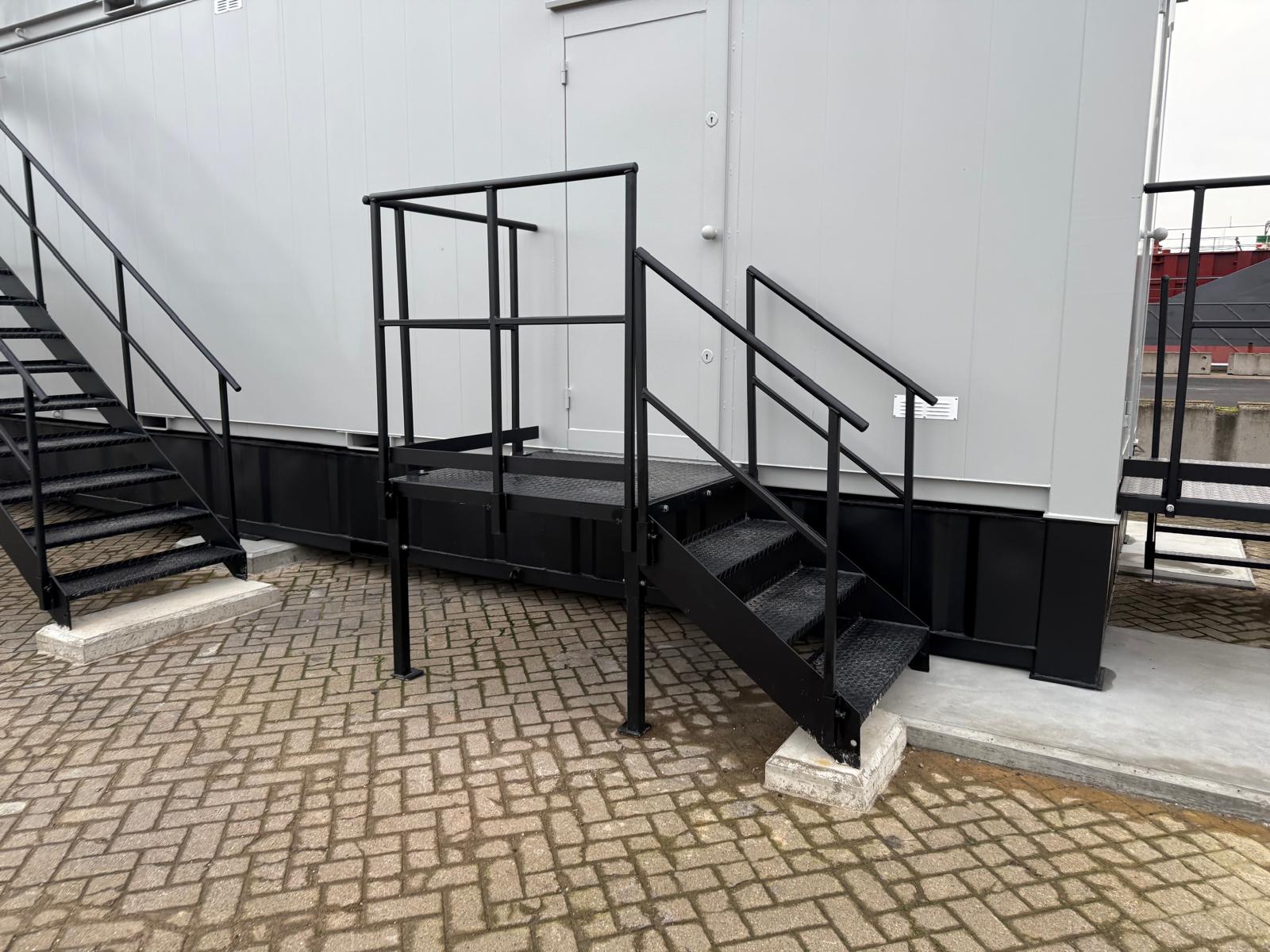 Building Regulation Compliant Steel Staircase built for strength, safety, and easy site access — perfect for modular and portable buildings.